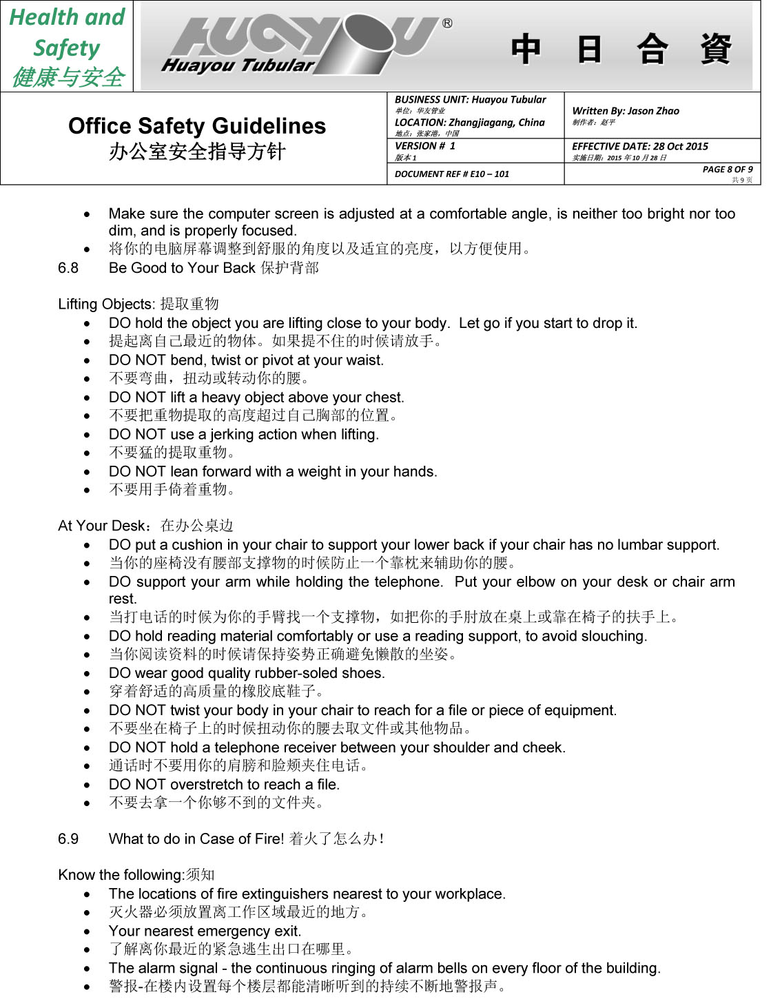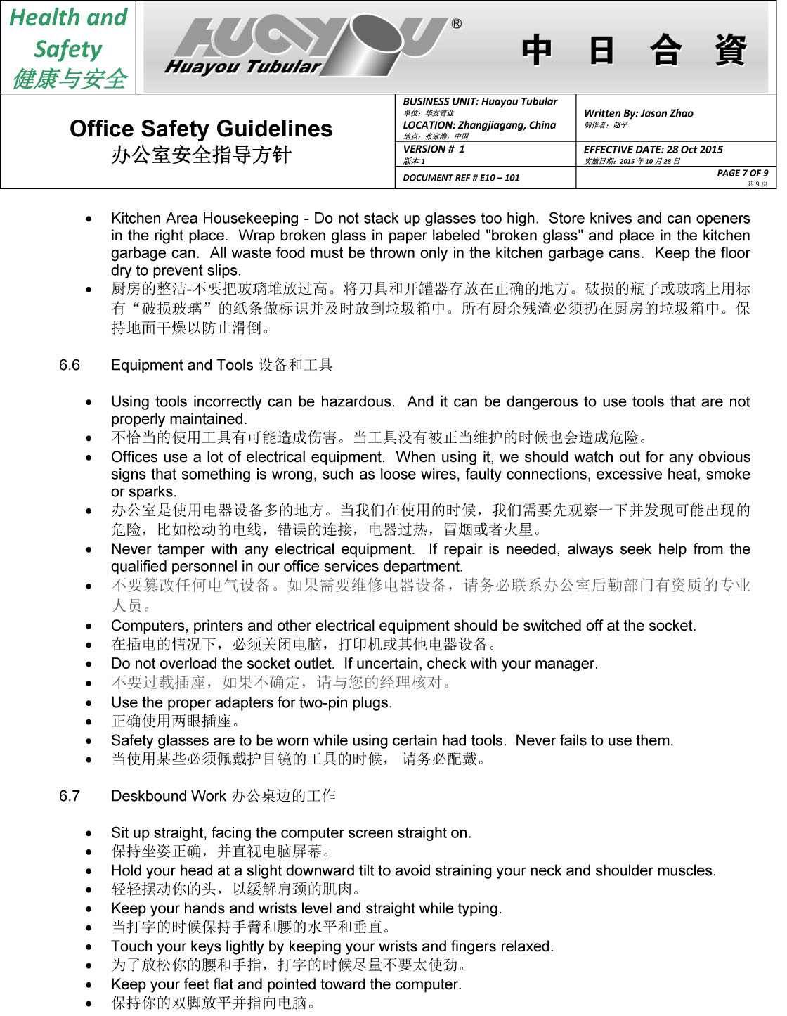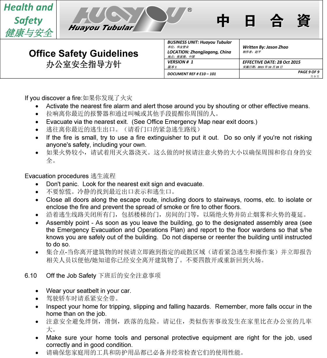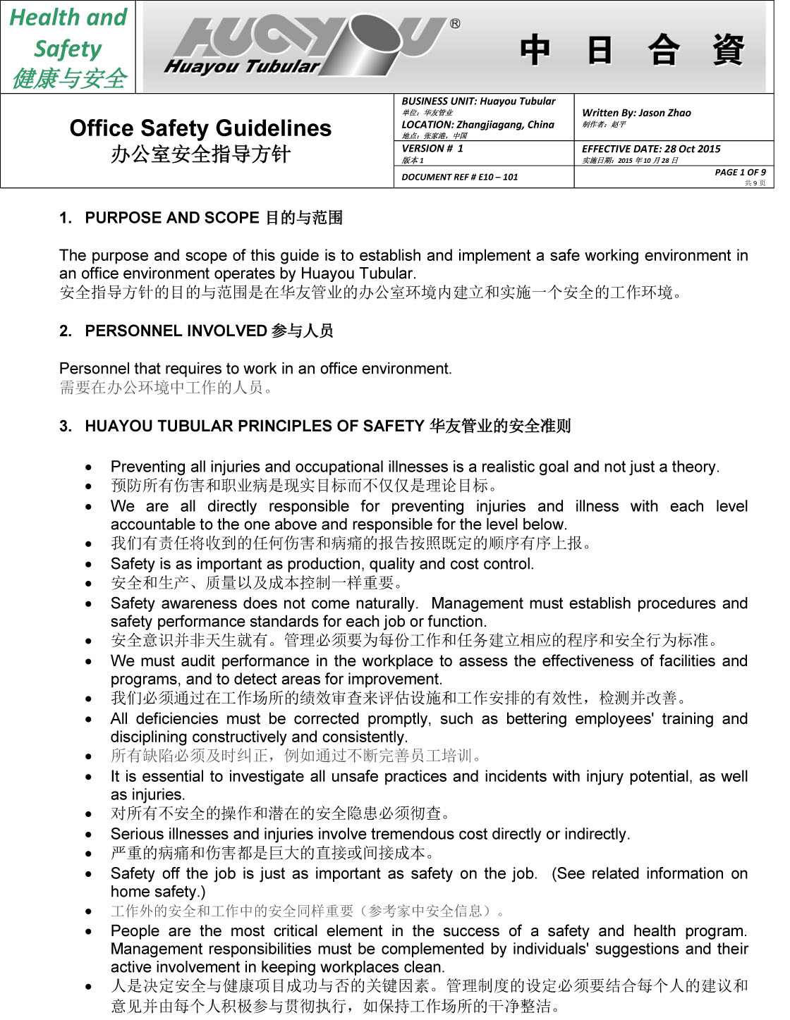 華友辦公室安全指導方針